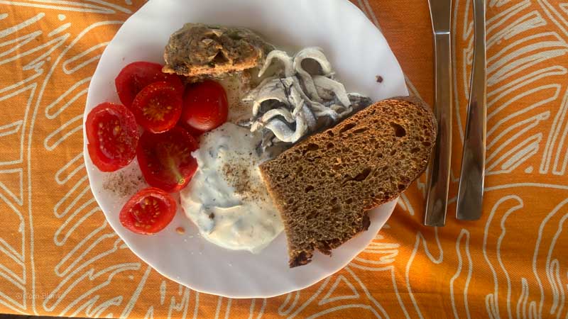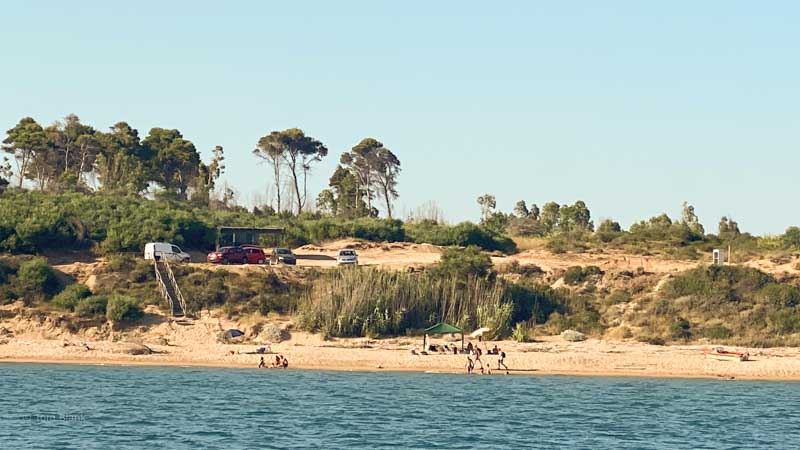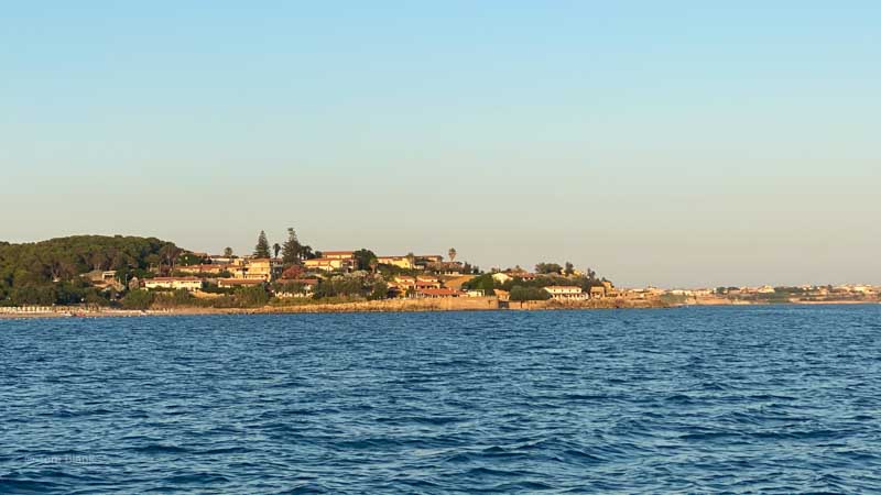 Seglerisch stellen sich an dieser offenen Küste zwei Probleme. Weht kein Wind, legt sich unser Schiff gerne quer in jede noch so kleine Welle und schaukelt sich in Querrichtung langsam hoch. Da fühlt man sich in der Koje so, als ob man dauernd geweckt würde, weil der Körper von einer auf die andere Seite rollt. Wenn dann auch noch die Ankerboje an den Rumpf klopft, ist das auch nachts um drei ein klares Zeichen zum Aufstehen.