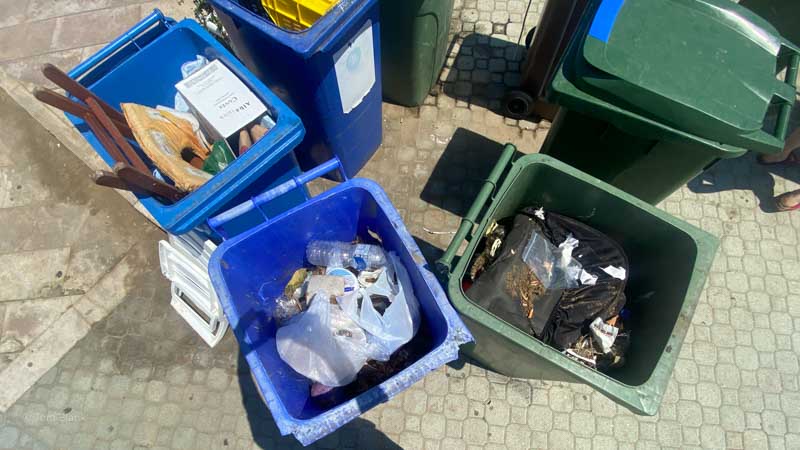 Sigrid hat gelesen, dass in Italien der Müll streng getrennt wird. Deshalb haben wir Papier, Plastik und Restmüll in getrennten Säcken. Frage: Was kommt wo hinein?