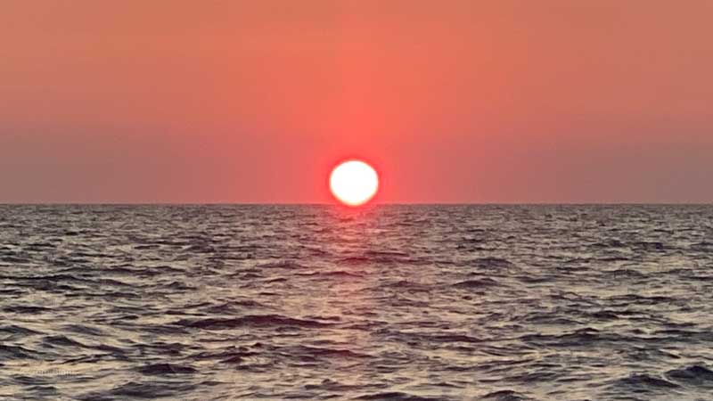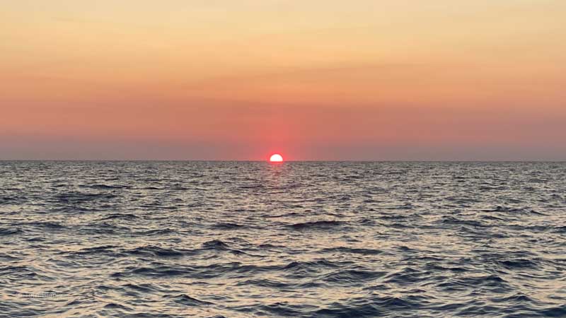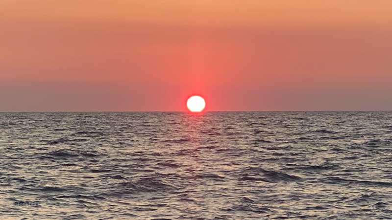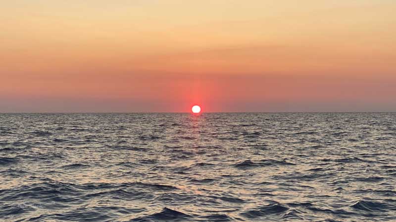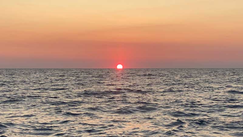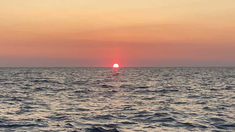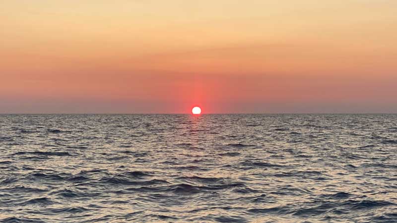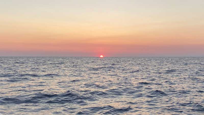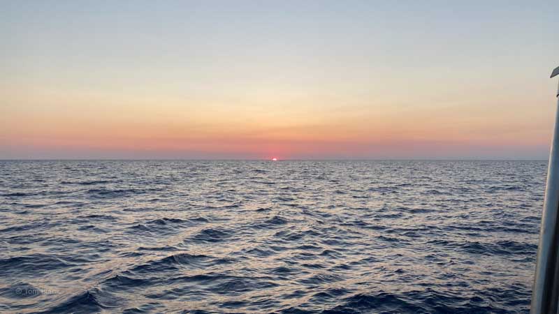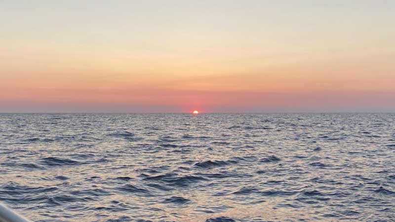 Der erste Sonnenaufgang auf See.