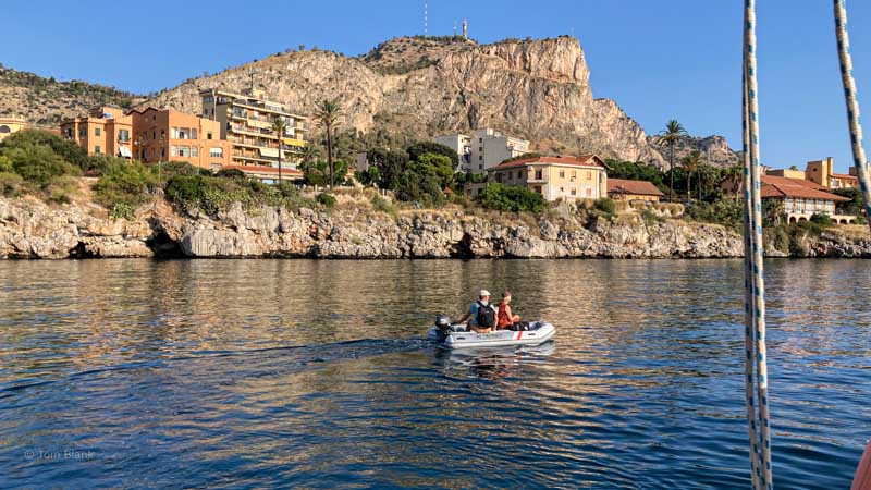 Also machen wir (Anny und ich) uns kurz entschlossen auf die lange Reise. Da wir von Palermo aus los segeln, haben wir knapp 200 Seemeilen vor uns. Wir rechnen mit zwei Tagen und zwei Nächten, die die Fahrt dauern wird. Folglich haben wir den Kühlschrank richtig vollgepackt mit guten Sachen.  Nur Anny sind in der kurzen Zeit natürlich noch keine Seebeine gewachsen. Aber als Ostfriesin aus Norden ist sie Seeluft gewöhnt und guter Dinge.